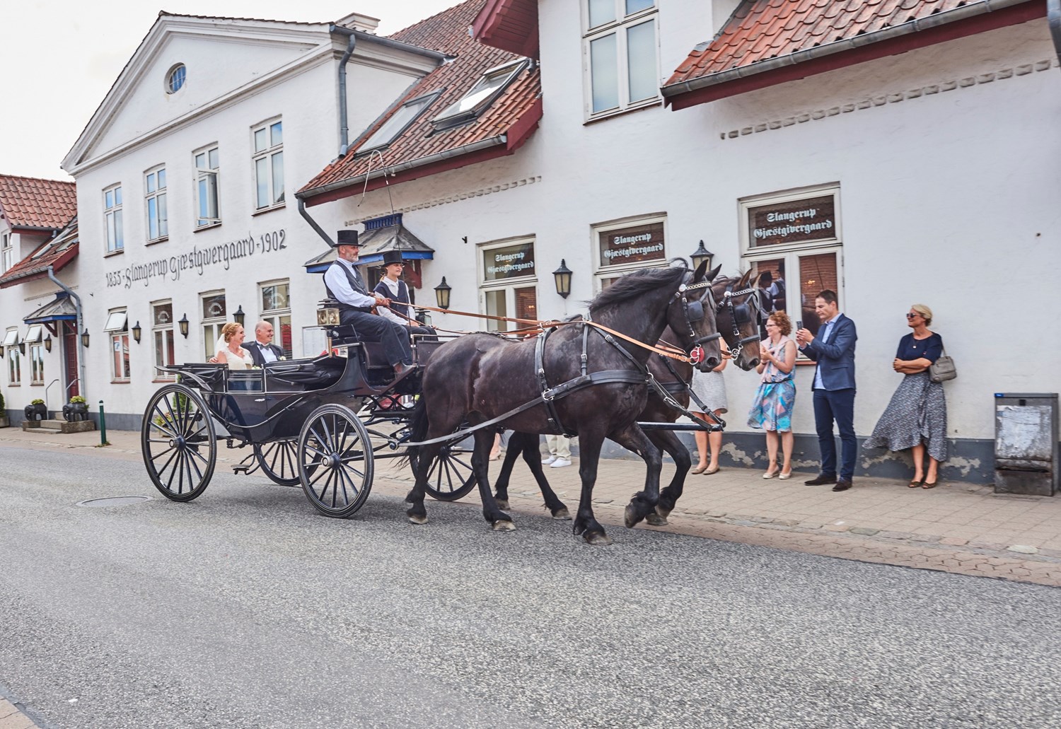 Hvis en moderne bil ikke helt matcher jeres stil på den store dag, stiller vi gerne med en klassisk, gammeldags hestevogn, der emmer af charme og tidløs elegance – og som skaber en uforglemmelig ramme om jeres bryllup.